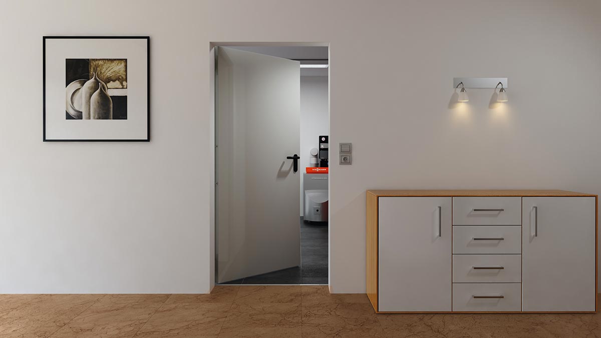 Für alle weiteren Türen in Nebengebäuden oder Kellerbereichen, bei denen es weder auf eine feuer- sowie einbruchhemmende Funktion noch auf Wärmedämmung ankommt, eignen sich Funktionstüren mit Schalldämmung. Sie halten auch langfristig hohen Beanspruchungen stand, ohne sich zu verziehen. Die Feuerschutztür FS Thermo65 ist nach El230 feuerhemmend geprüft und hält damit im Brandfall bis zu 30 Minuten stand. Darüber hinaus bietet die Tür mit einem 65 mm starken Türblatt eine sehr gute Wärmedämmung und extra Schalldämmung.