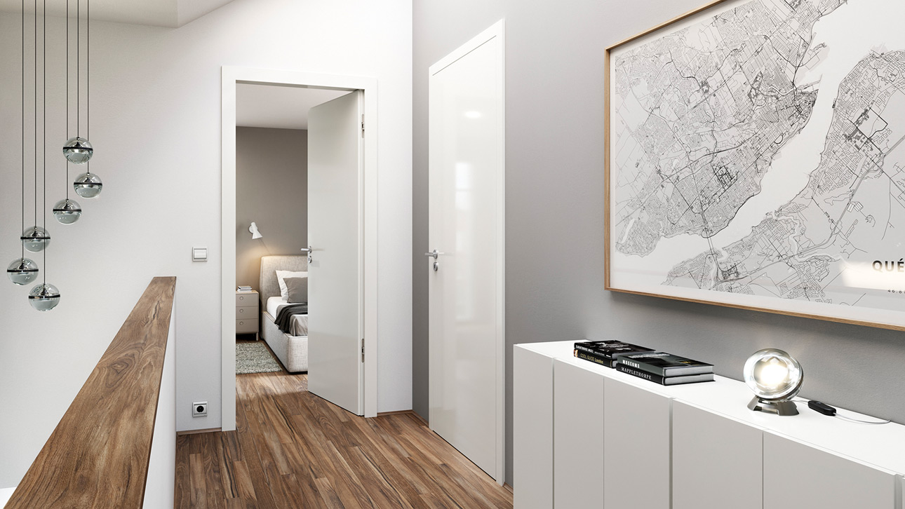 Das Türblatt in stumpfer oder gefälzter Ausführung, kombiniert mit Ihrer Wunschfarbe oder Ihrem Wunschdekor, schafft eine wohnliche Atmosphäre, die zum Entspannen einlädt.